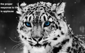 The desktop pic changes now and then — right now it’s a snow leopard, reminiscent of the new OSX snow leopard. I enjoy pics that are calm but inspiring.